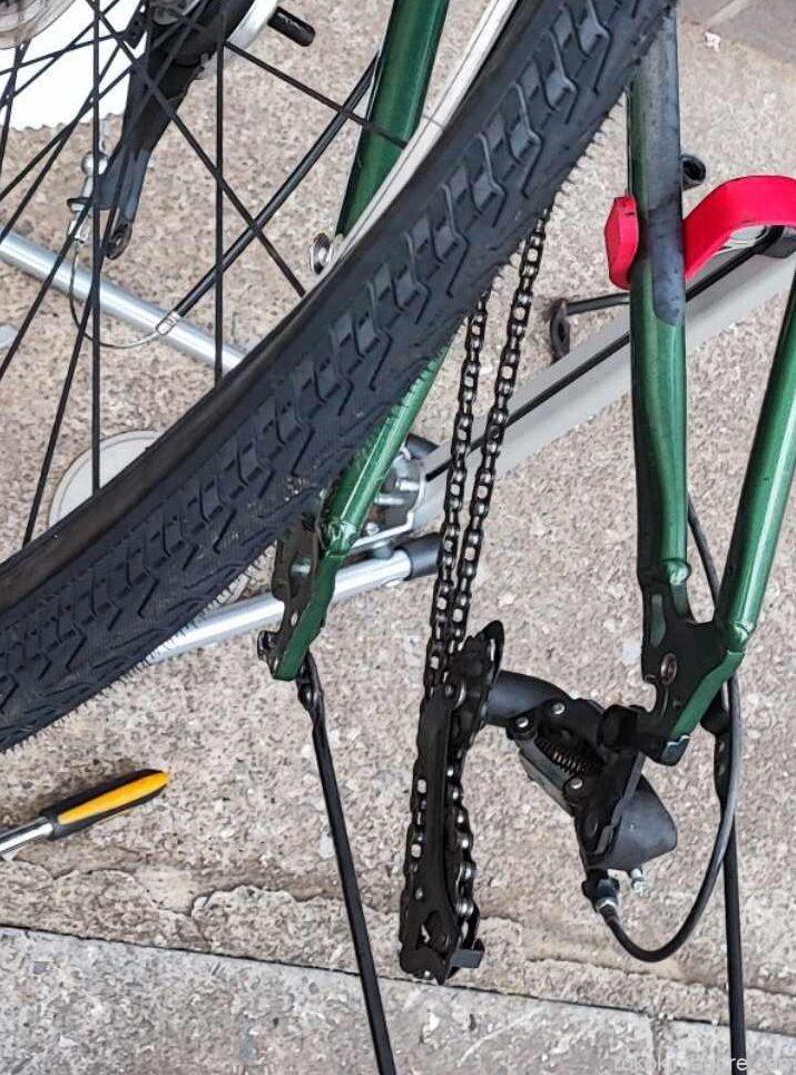 普通の電動自転車の後輪は普通に後ろに引っ張り出して取り外していたのですが、ベロスターの場合だと何故か一度下に下げて引き出さなければ行けなかったので、一番苦労しました。